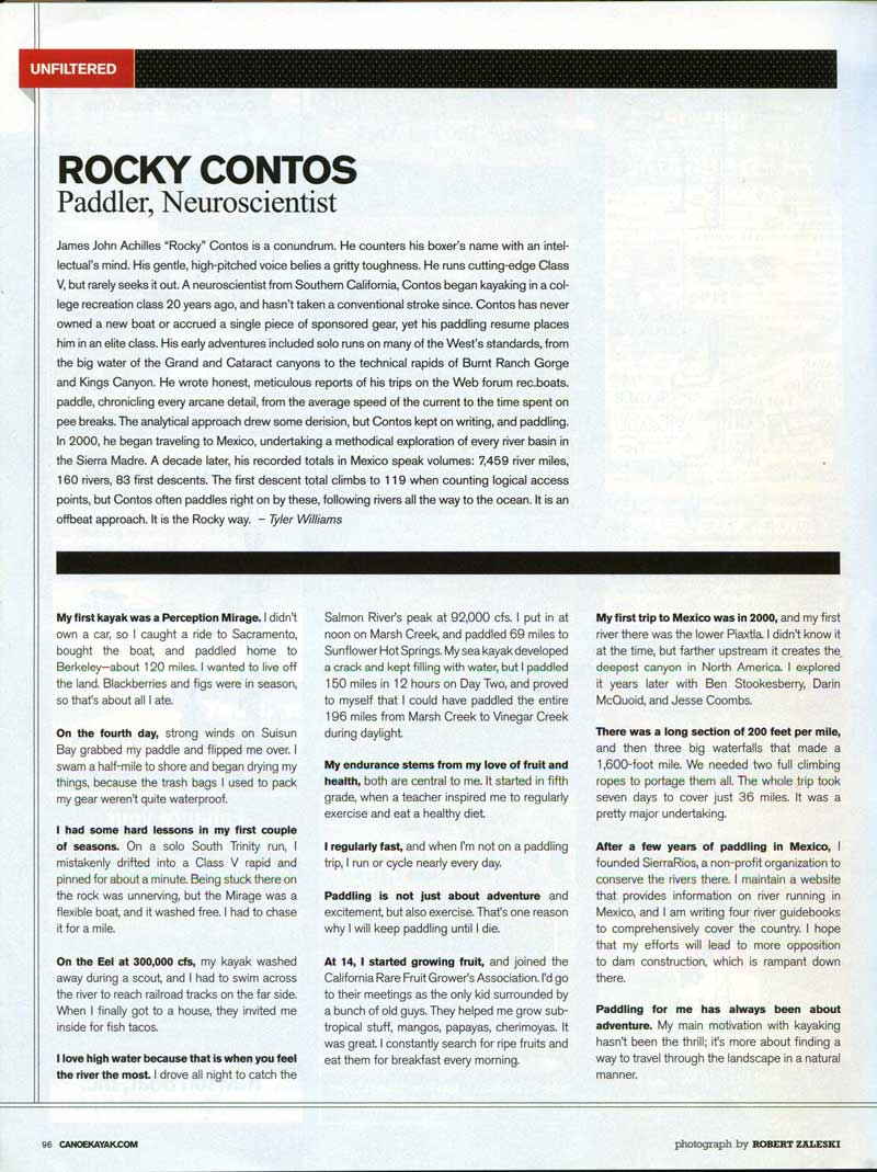 Canoe & Kayak 39(3): June 2011; pp. 96-97. by Tyler Williams/Rob Zaleski.