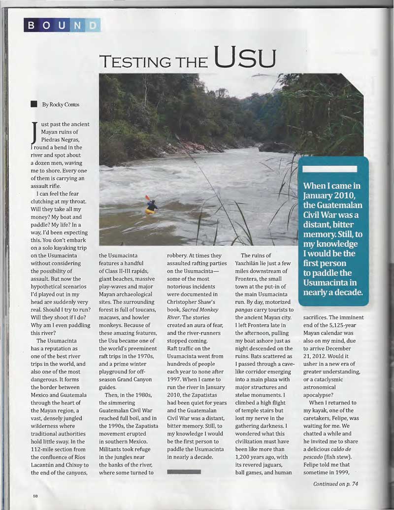 Testing the Usu. Canoe and Kayak. July 2012; pp. 58, 74; by Rocky Contos.