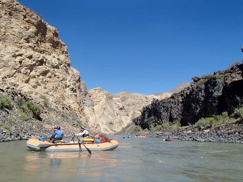 We will generally paddle from ~9 am to 4 pm with some stops for side excursions. At normal higher spring season flows (Oct-Dec) the river is very fast so it is usually quite easy to cover 10 km/hr of class III water even in rafts as long as we are on the water focusing on downstream progress. Stops for hikes, scouts, flips, and water collection do cause signficant delays, but we should still easily cover the full distance in the allotted time if flows are average and we do not have unplanned delays. With average flows there should be plenty of time in camp. If flows are abnormally low, there may be less time for such activities. With extra time, we may arrange additional excursions.