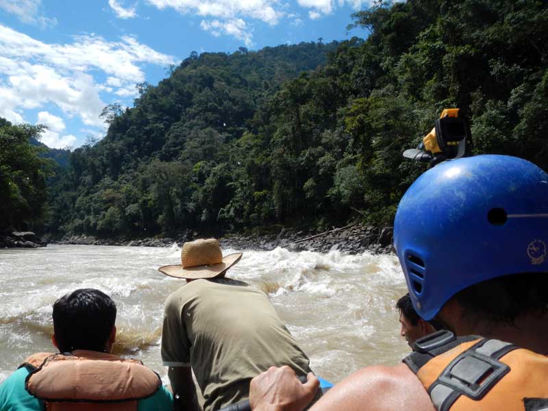 Río Marañón is the parent stream or "mainstem" source of the Amazon, and therefore is the Upper Amazon. The Jungle Pongos section follows the journey started on the Grand Canyon Amazon section, passing through more canyon that enters lush jungle. A SierraRios expedition in 2012 learned of plans for three mega hydroelectric dams that are due to flood most of this section of river and dislocate thousands. The next expeditions are intended to increase appreciation of the river and generate more awareness to help stop the dams. Voice your opinion in the SAVE RIO MARANON campaign. Sign a petition! Watch a film. Make the issue known! Support the cause with a donation! We may have a representative from International Rivers with us. The trip is open to everyone: rafters, kayakers, IKers, and passengers. No prior whitewater experience is necessary on a raft.