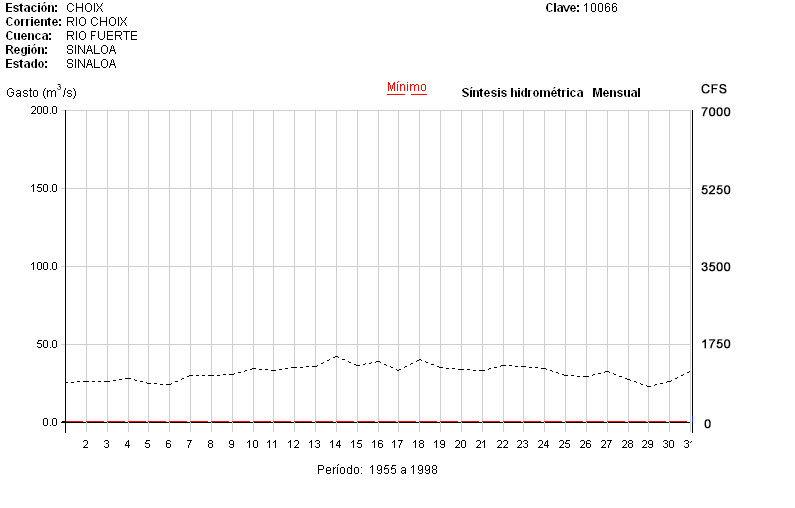Mean August flow for Rio Choix at the Choix Gauging Station. Click "Next" to see individual years..