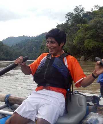 EUSEBIO CHUMPI ON THE MARAÑON: On the 2012 Marañon trip, we were grateful to have met Eusebio Chumpi and his son, who accompanied Rocky, Barb, and two mestizo friends (Noe and Marco) through the Aguaruna territory to the pueblo of Imacita. It was tense at times, since Eusebio knew that gringos are not generally welcomed by his fellow Aguaruna. But Eusebio took it on himself to see us through safely. Eusebio had taken motorized lanchas through the major class II, III, and IV pongos in the past (there's over a dozen huge rapids on the section!), and knew the names and lines through each of them. Although he didn't row the cataraft through the big rapids this time, he did take over the oars in the lower flatter section. He said he (and his son) would like to learn more about rowing, row through the big rapids next time, and do the ~250 km trip down through the Pongo de Manseriche when we come back. He and his son are interested in guiding tourists. It is one of the most amazing sections of river in the world, and ideal to offer as a 3-day excursion for tourists, enjoying the river and whitewater while also learning about the Aguaruna culture and the threats they have faced (from settlers, mining, petroleum, and dam companies). HELP EUSEBIO! DONATE! Better yet, donate time! Come on the next Marañon trip and meet Eusebio and son for yourself. Set up connections, get him gear and equipment, stay a while with a raft you bring and take Eusebio down several times to teach him more! We still need financial donations. Gear is expensive, not just to purchase but to get down to the Marañon. Trips need to be filled. Advertising costs a lot! Word needs to get out. We need more partners working with us to spread fliers, go to events, give talks. It's NOT FREE!!! If you donate, your money will go a long way toward developing sustainable ecotourism and protection of the free-flowing Marañon and other rivers!!! |