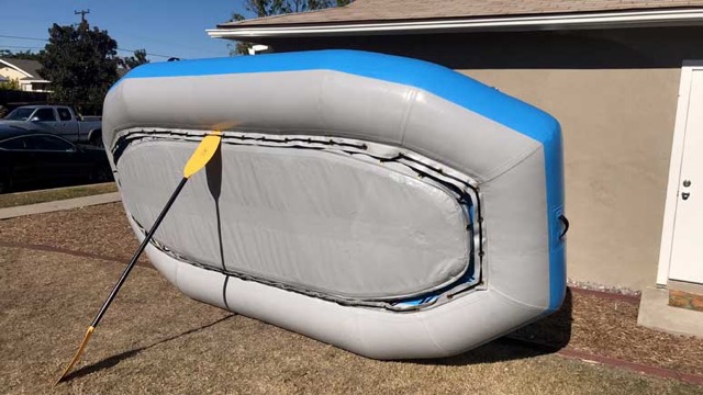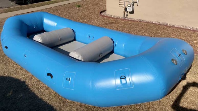 Some rafts are in stock. Older used models or blems may be available at discounted rates. Standard colors are blue or gray (though other colors may be available using a lighter 2000D PVC material). Prices below indicate drop-stitch floor. [I-beam floor reduces cost by ~$300]. If interested, please inquire.
