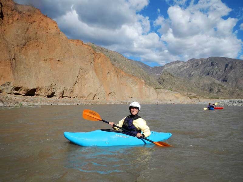 Enga Lokey enjoying the scenic and eaiser section of Rio Maranon downstream of Chagual. It is 157 km Chagual to Balsas.