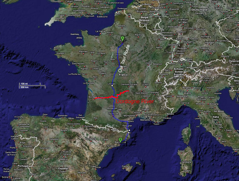 The Dordogne River is located in south central France between Limoges and Toulouse. It is a popular easy river to do multi-day trips in the summer.