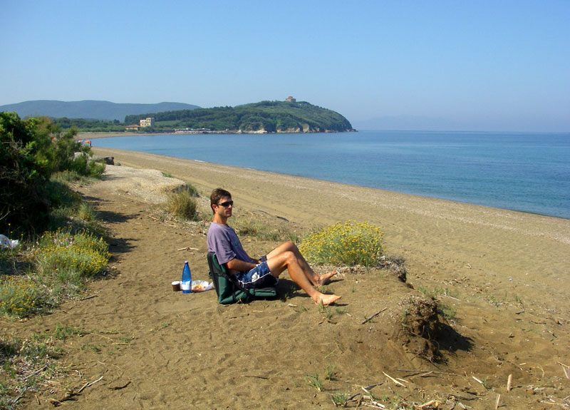 These slides show Pisa, Florence, and Venice. After Isola Elba, we camped by this beach on the mainland and went for some swims again.