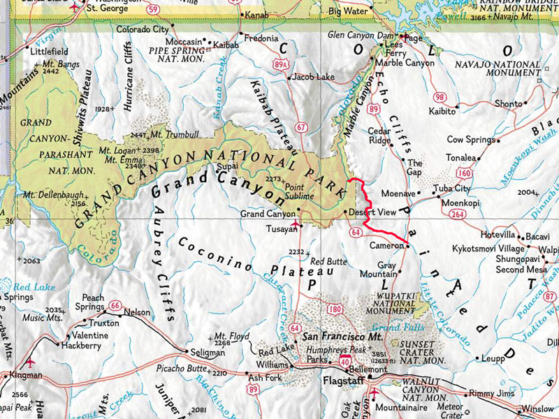 The Little Colorado River gorge is a fantastic 57-mile class IV journey into the Grand Canyon (red part of map below). Exit logistics are complicated.