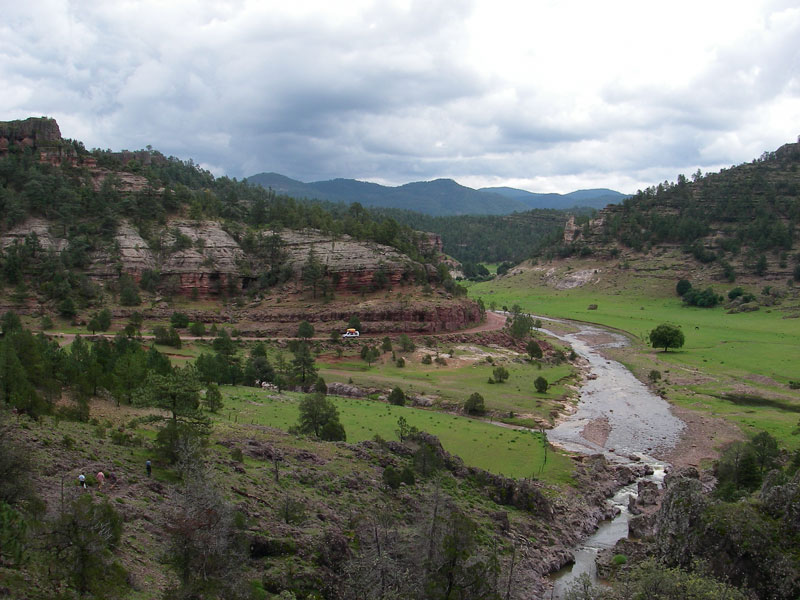 Put-in area near Huevachic. The creek/river is in a valley with ranching and some farming. It takes about 2 hrs to drive here from Creel.