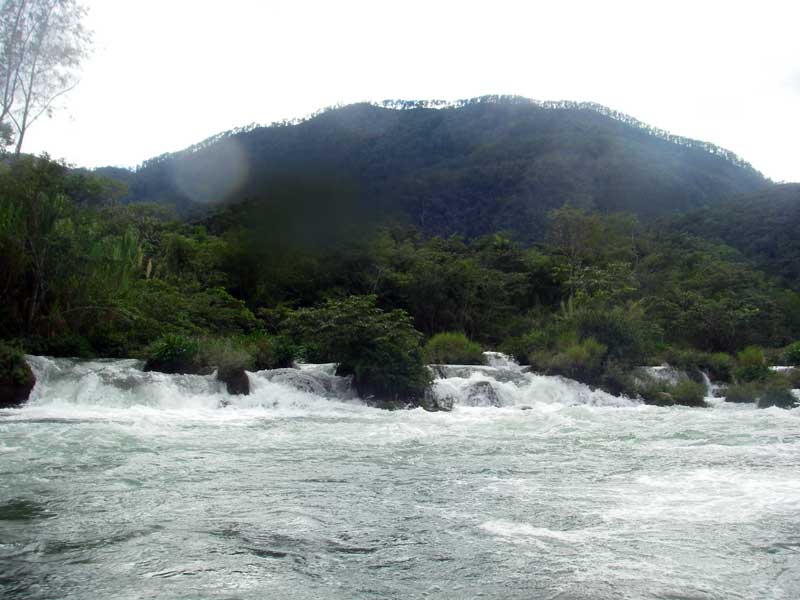 The lower canyon of Río Jataté starting at La Sultana continues one of the classic class IV rivers in Mexico, initially with travertine class III-IV.