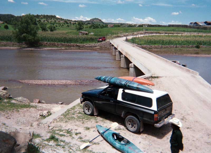 The "Gates of Urique" run is a fantastic class IV run on Rio Urique that begins here at the bridge by Norogachi. [Solo first descent, 2002].